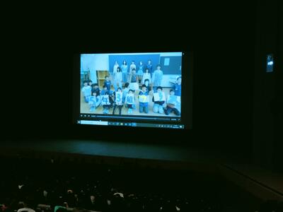 第二部の後半は、代表委員会の企画によるもの。各クラスが作成した動画をみんなで鑑賞しました。どのクラスも特色が表れていて、にぎやかな雰囲気の中、鑑賞していました。