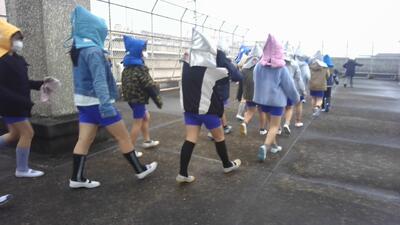 寒さが心配でしたので、訓練が始まる前には、「寒さ対策として上着を着るように」と校内放送で呼びかけました。