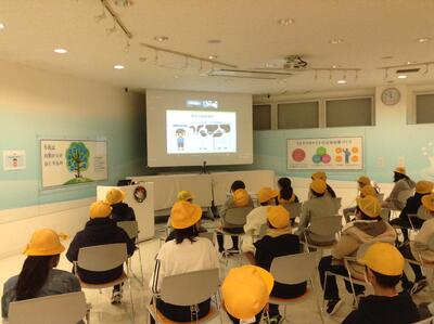 明治なるほどファクトリーでは、2グループに分かれて、管理栄養士の方とリモートで、乳製品の栄養分や牛の育て方などの話を聞く食育活動と工場見学を行いました。