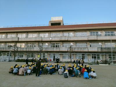 避難後は、安全担当の先生と校長先生からお話がありました。とても静かに避難できていること、みんなが真剣に取り組んでいることを全体で振り返りました。