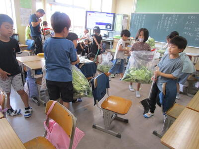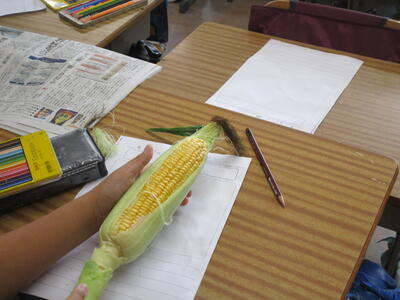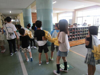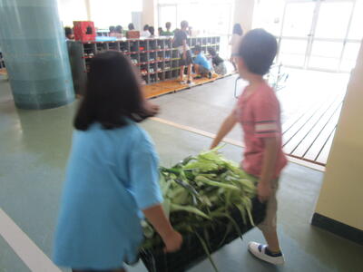 2年生、給食で提供されるトウモロコシの皮を朝のうちにむいてくれました。作業をした後に、教室をきれいにしていました。皮がむけたトウモロコシや皮を運ぶ子供たちに「ありがとう、給食が楽しみです」というと、とても誇らしげな笑顔でうなずいていました。