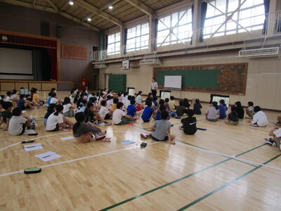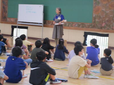 5年生、明日からのネイチャースクールに向けて最後の学年決起集会がありました。目標等を確認して、明日からの意欲を高めました。途中には養護教諭の先生から、月経やその対応、後始末についての話もあり、全員しっかりと聞いていました。最後に、明日の集合時刻・場所を伝え、そして困ったときには必ず先生に相談することを確認して集会は終わりました。ネイチャースクールが実りの多い2日間になるといいですね。