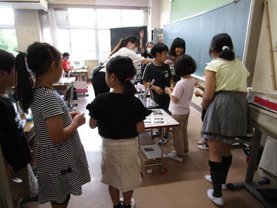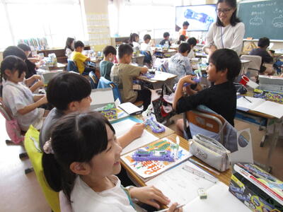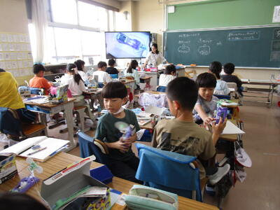 4年生、教室で理科の実験をしていました。直列つなぎと並列つなぎの場合の、プロペラの風の量を比べていました。ほかのクラスは、体育館でプレルボールをやっていました。8チームに分かれて、試合をやるようで、班ごとに練習に取り組んでいました。週明けから元気いっぱいです!