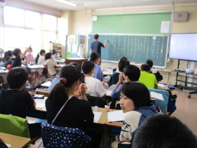 6年生、国語の「パネルディスカッション」の学習で、「論題を決めよう」をめあてにして話し合っていました。「食品ロスを減らすには」「いじめをなくすには」など様々な意見が出ていました。さらに、先生から「クラスの中で話し合って、自分たちにいかせそうな論題を考えてみましょう」と言われ、3人組で話し合っていました。