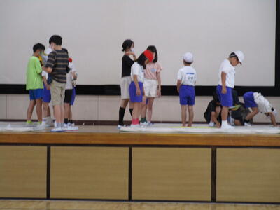 3年生、新体力テストの測定(反復横跳び、立ち幅跳び、上体おこし)を体育館でやっていました。5年生が測定のお手伝いをしてくれていて、進行もとてもスムーズでした。5年生、頼もしいですね。