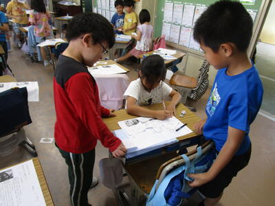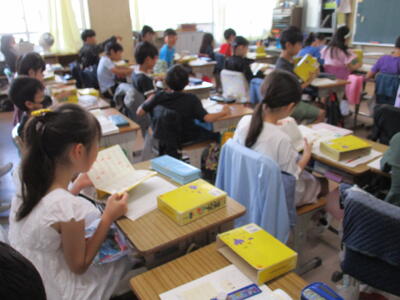 4年生、漢字辞典の使い方の学習をしていました。「漢字辞典を持っている人?」と先生が聞くと、約三分の二の子たちが手をあげました。「では「治」を調べたいときはどんな風に調べるのかな。実際に漢字辞典を手に取ってどうやったら調べられるか考えてみてください」というと、子供たちは、「目次、索引・・・」とつぶやきながら、漢字辞典を手に取っていました。