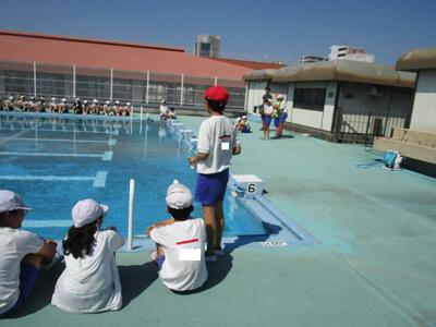 6年生、体育委員の進行で学年全員でプール開きをしました。学年の先生方からプール学習の時に、気を付けることについて話があり、その後、皆で水の神様に安全をお願いしながら、体育委員会の児童が4隅にお塩とお酒をまきました。ルールやマナーを守って、安全に楽しく学習してほしいと思います。