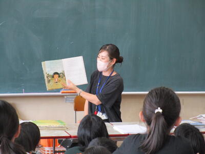 6年生、朝の会で、チーム対抗でクイズを出したり、学校の謎を皆に伝えたりして盛り上がっていました。隣のクラスでは、インドネシアから体験入学にきている子供が、画像を使って、インドネシアの学校の様子や日本との文化や宗教の違いをわかりやすく説明していました。「1年中、暖かいので、プールの授業が週2回あります」の部分には、聞いている子供たちから「いいな!」という声が聞こえてきました。