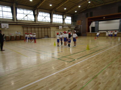 4年生、体育館で3人1チーム、8チームでプレルボールの試合をやっていました。3分で相手を変えて、いろいろなチームと対戦していました。最初の頃より、かなり上達して、一人一人の子がボールに触れる回数も多く、楽しく取り組んでいました。
