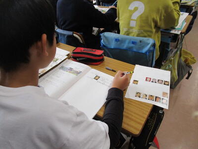 4年生社会、昔の印旛沼の洪水をどうすれば防げるのか、当時の地図を見ながら、子供たちが予想をしていました。6年生も同じく社会、明治維新の時のいろいろな人々の思いを予想しながら学習していました。ノートのまとめ方がとても工夫されていました。