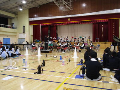 土曜日ですが、今日は八中ブロックの地区別音楽会が第八中学校の体育館で行われました。出演は第八中学校、鶴指小学校、平田小学校、大和田小学校、4校の吹奏楽部です。大和田小学校は、「威風堂々」「ダンスホール」「Departure」の3曲を披露しました。大和田小はもちろんですが、どの学校も、練習の成果を発揮して素敵な演奏でした。最後に、八中の演奏で、「ふるさと」を全員で歌いました。ブロックの学校で集まったのは、久しぶりですが、とてもいい時間をすごすことができました。