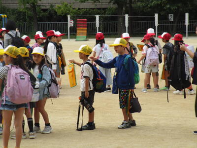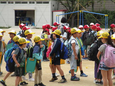 2年生が校外学習に。今日は千葉市動物公園へ行ってきます。探検バックをもっていろいろな動物を観察します。出発の様子を見ているとワクワクの気持ちが伝わってきました。
