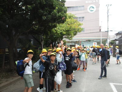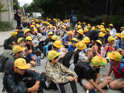 今日は5年生の校外学習。江戸川(行徳橋)へ向かい、自然や生き物について学びます。虫かごを手にみんなウキウキ、わくわくした様子でした。どんな生き物に触れ合えるか楽しみです。