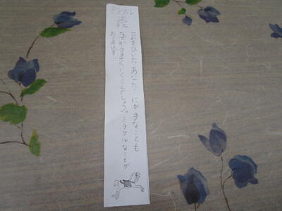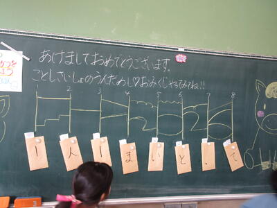 新年あけての1日目です。子ども達は元気に登校し、にぎやかなスタートを切りました。冬休みを振り返っていたり、席替えをしていたり、漢字テストをしていたりといろいろな学級の様子がありました。冬休みにかかわるビンゴ、今年の抱負を書く、お正月のものを折り紙でおる、おみくじをひく、百人一首などなど楽しい時間が子ども達を笑顔にしていました。