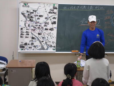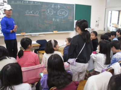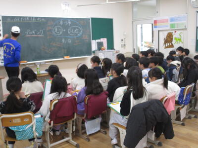 3年生の総合的な学習の時間でゲストティーチャーの小島さんが来校しました。小島さんは市川プロギングの代表で、走りながらごみを拾う活動を月に1回開催しています。小島さんは高校まで市川市で過ごされ、社会人になってから地域のために何かできないか、仲間とともに楽しみながらできることはないかという思いから今の活動を始めたそうです。いろいろな質問に答えてくださり、将来のことなどにも話が広がっていきました。月末に活動の予定があるとのことでした。