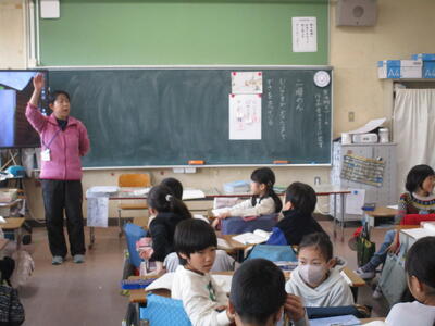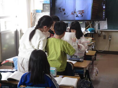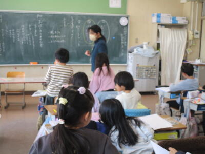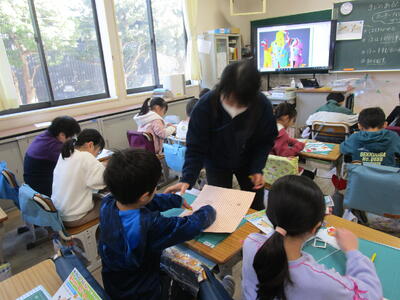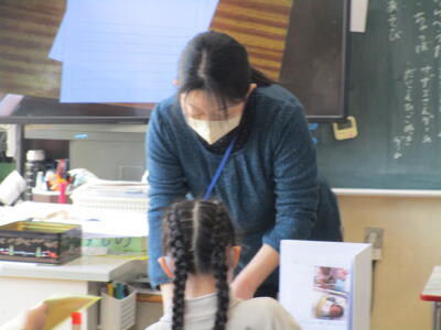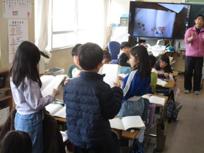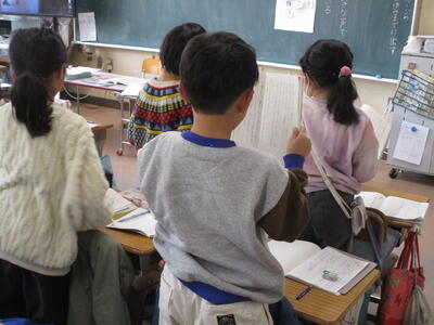 2年生が『かさこじぞう』の音読をしていました。グループで役割を決め、気持ちを込めて読むことがめあてです。登場人物になりきって上手に読んでいて、おうちでもよく読んでいるんだろうなとわかる姿が見られました。