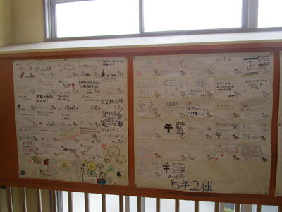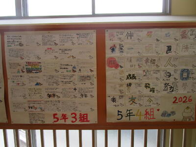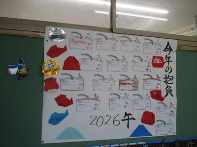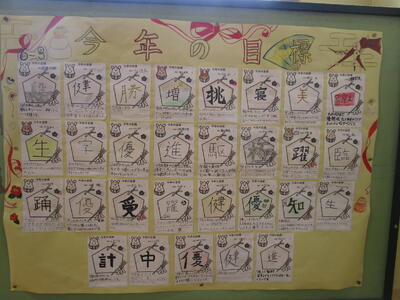 各学年で、今年の抱負やめあてなどについて考えました。それぞれ絵馬や干支に書かれていて、お正月にちなんだ折り紙を飾るなど工夫がありました。あっという間に1月も後半に入りました。1日1日を大事に過ごしていきたいものですね。