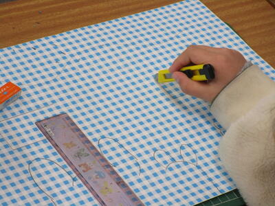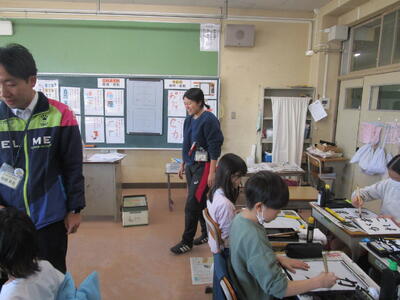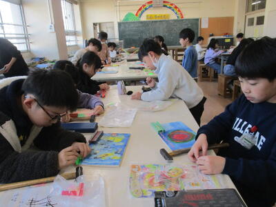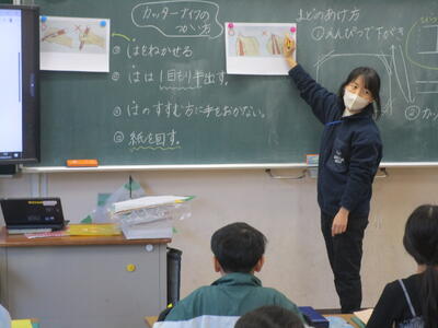 2年生が図画工作科でカッターを使って窓を作る学習に取り組んでました。刃物を扱う学習は手を切らないように気をつけること、また多くの人数で行うのでルールをしっかりと守ることなどを確認します。1週間ぶりということでみんな慎重に取り扱っていました。