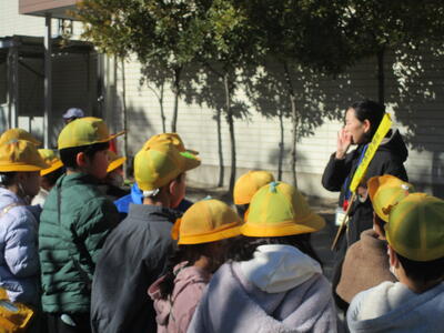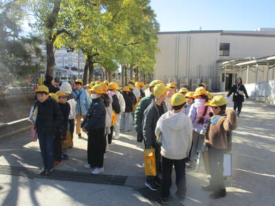3年生が消防署見学へ出発です。前半組、後半組と別れていきます。「いってきまーす。」と元気な姿を見せてくれました。