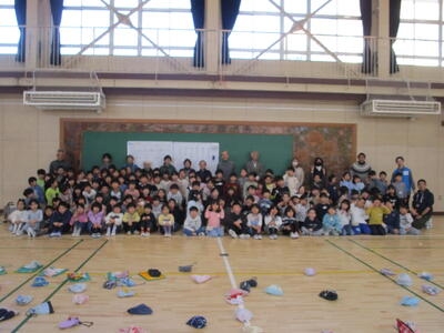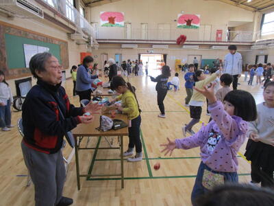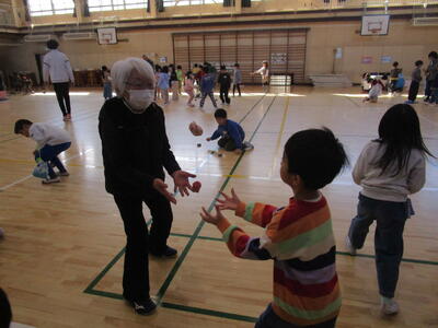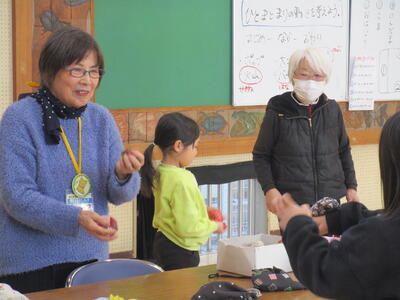 1年生の生活科で昔遊びを行いました。今日は地域のボランティアの方が12名も来てくださいました。日ごろから、教室の中でいろいろな道具で遊んではいたのですが、今日は昔遊びの達人にいろいろ教えてもらいながら、たくさん遊び、楽しむことができました。
