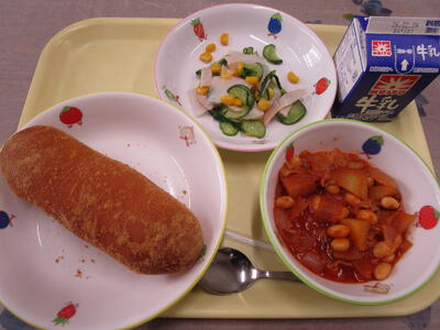 牛乳 きなこ揚げパン ポークビーンズ かぶのサラダ