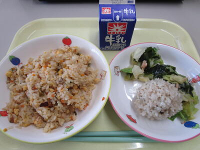 チャーハン 肉団子のもち米蒸し わかめのサラダ 牛乳