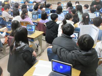 今日は2月の「全校朝会」を行いました。体育館がエアコン設置工事中だったため、久しぶりの全学年揃っての朝会となりました。昨日からエアコンも使えるようになり、あまり寒さを感じることなく過ごせました。子ども達は久しぶりの朝会にもかかわらず、静かに落ち着いて参加していました。校歌をみんなで歌い、校長先生の話、5年生からの発表、表彰を行いました。校歌を聞きながら、今日も元気に歌っているなと嬉しく思いました。