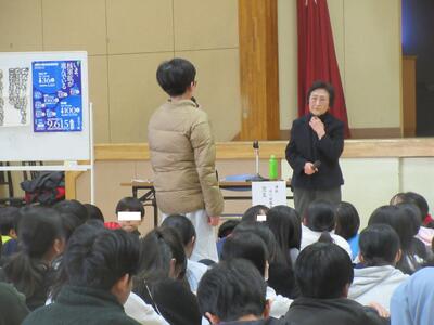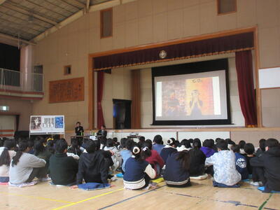 1月27日(火)に「被爆体験講話」を行いました。講師の方は市川市在住で「ノーベル平和賞」を受賞した、日本原水爆被害者団体協議会の方です。講話では、ご自身が広島で被爆した壮絶な体験談を絵や写真、資料を基にお話ししてくださいました。話を聞いている子ども達も、講師の先生に真剣に向き合い、最後まで静かに話に耳を傾けていました。子ども達にとって「命と平和の尊さ」「当たり前の日常のありがたさ」を学ぶよい機会となりました。