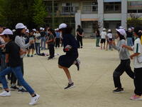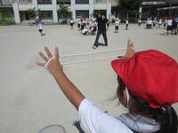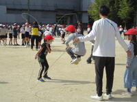 外での授業もやりやすい気候となってきました。1年生体育の縄跳びと遊具遊びの様子です。