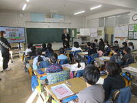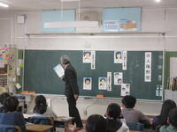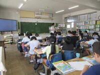 本校では、外国籍の児童や外国語を母語とする児童が多く在籍しています。その子ども達にとって,,日本語がわかるかどうかということはとても大切なことです。日本語がわかってくれば、授業も日常の学校生活も友達と関わりやすくなり、かなりの不安感は低くなり、積極性も出てくると思います。本校では2名の日本語指導の教員がおり、それぞれの児童の時間割を決め、テキストや絵カード等を使用し、週に何回か日本語学習を行っています。指導は日本語指導の教室で行う時もあれば、在籍クラスに赴いて学習指導のサポートをする時もあります。指導する教員も、子ども達の実態に合わせて工夫をしています。