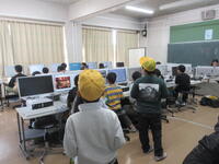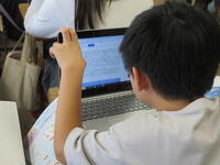 いろいろな学年、クラスでタブレットや大型提示装置等を使って学習活動をしていますが、特別支援学級においてもパソコンの活用をしています。この時は、担任やICT支援員の方のサポートを受け、マウスの使い方や学習ソフトで楽しみながら活動をしていました。