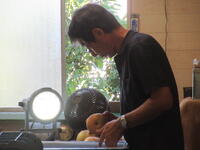 毎年、4年生は市川自然博物館の学芸員の方をお招きして,春と秋に自然観察教室を行っています。子ども達を前に講師の先生は「実物を見ることが大切」と話しているのが心に残りました。観察のスタートは職員玄関前のイチョウの木です。イチョウの木には雄雌があり、雌(めす)の木にだけ実がなり、中に種があることを話すと「銀杏?」と聞き返していました。隣のビワの木では黄色に実がたくさん生っていました。色づいた大きな実を見て「食べたいなあ」と口々に言っていました。隣の観察池にはヒキガエルの無数の黒いオタマジャクシが泳いでいました。鬼高小周辺に棲んでいる野生のヒキガエルにとってとても重要な池で3月になるとこの池を目指して、卵を産みに来るということを教えてもらいました。また、この池が無くなったら産卵場所がなくなるのでヒキガエルも滅んでしまう、という話も聞きました。ヒキガエルの寿命は10年くらいで、池では暮らさないことを教わると、みんな驚いていました。この後は、学校を取り囲む植物を移動しながら観察しました。カタバミ(植物)とヤマトシジミ(蝶)の関係、ムラサキツユクサ、梅、かしわばアジサイ、きのこ(かわらたけ)、さつき・・・・。学芸員さんの説明を受けながら、子ども達は聞き逃すまいと一生懸命にメモを取っていました。また、虫などを見つけると、講師の先生に聞きに行くと、すぐに教えてもらえるので子ども達も興味を持って観察していました。実物のものを見たり、触れたり、においをかいだりと目を輝かせて学習に取り組む姿を見て、体験活動の重要さを実感しました。