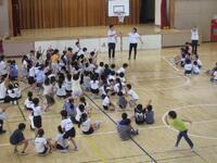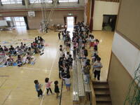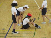 スポーツテストの種目に「シャトルラン」があります。持久力をみる種目ですが、今日は、1年生のシャトルランのテストが行われました。1年生1人につき、6年生のお兄さんお姉さんの補助が2名ついて行いました。子ども達は補助担当や走り方などを確認後、「ドレミファソラシド」の音に合わせて一人一人頑張って行っていました。6年生も補助の仕事をしっかり行ってくれました。さすが最高学年だと感じました。