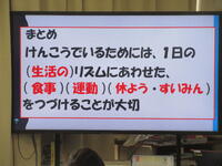 今日は高学年の家庭科の授業にお邪魔しました。本校では家庭科の授業は家庭科専科の教師が教えています。専科の教師が教えることで、より具体的で、わかりやすい授業を行うことができます。今日の授業は、調理実習についての学習でした。ピーマン、キャベツ、ニンジンなどの材料をどう切ったらいいのか、掲示物を使って分かりやすく教えていました。また、大型モニター(ICT活用)を使って、教師が作った動画を見せながら、ポイントや調理の仕方などの確認をしていました。今はお店に行けばいろいろな食べ物が手に入る時代ですが、自分で作る楽しさがわかったり、安全に自分で調理できたりといろいろなことを調理実習を通して学んでほしいなあと思いました。