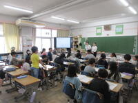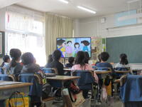 本日、講師の先生をお招きして、人権教室を行いました。授業では、プレゼントをきっかけに起こった「仲間外れ」について、アニメ動画をお話を前半、後半に区切って、学習しました。「相手の気持ちはどうかなあ?」「どうしてそうしたのかな?」「みんなはどう?」「一人の中に、優しい心といじわるな心が混ざっているね」など 登場人物の行動や発言を取り上げながら、「自分の人権」「相手の人権」についてがみんなで考えました。