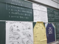4年生は図工で今「カクカク板を組み合わせたら」の単元を学習を行っています。板を切って、組み立てて作品を作っていきますが、簡単に言うと、子ども達は①「自分の作りたいもの」を考え、②それを「作るために必要な板を考え、必要な板を切り出すため四角い板に線を引き」、③それを「切って」④「組み立てて」いきます。