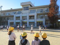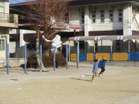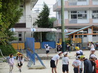 本校は児童数が多いので、低学年(1年・2年・3年)と高学年(4年・5年・6年)で業間休みと昼休みを1日ごとに交替して、校庭使用の割り当てをしています。15分間の休み時間ですが、毎日多くの児童が校庭に出て元気に過ごしています。今日の業間休みは低学年でしたが、低学年は、遊具で遊ぶ子ども達が多く、そのほかにも一輪車に乗ってみたり、虫探しをしたり、ドッジボール、鬼ごっこをして過ごしています。