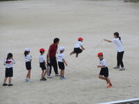 高学年に続き、今日は、運動委員会主催で、低学年の長縄大会が行われました。ルールは同じで、各クラス、有志が集まり、1回3分間の2回トライアルで行われました。高学年とは違い、回すスピード、跳ぶ早さはゆっくり目でしたが、どのチームも「ひと跳び、ひと跳び」意識して跳んでいるのが伝わってきました。その姿が、かわいらしく感じました。大会を企画してくれた運動委員会の皆さんありがとうございました。