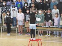 延期されていた「うたおう集会」を先週12月5日(金)の3,4時間目に行いました。延期に伴い、中学校の体育館ではなく、場所は本校の体育館で行いました。また、体育館が工事中なので、全学年体育館に集まるのではなく、ペア学年での開催としました。ペア学年は、活動の際にいろいろと一緒になって活動するペア学年です。ペア学年は「1年生と6年生」、「2年生と4年生」、「3年生と5年」となっています。すべての発表を見ましたが、どの学年の子ども達も今できる発表を「精いっぱい」行っていたと思いました。ペア学年での発表でしたが、上の学年は、下の学年の発表を見て「かわいい」、「上手だね」などと話していたり、逆に下の学年からは、上の学年の発表を見て、「きれいな歌声だね」、「かっこいい」などの感想が多くきかれました。