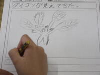 約1か月前には小さな芽だった「あさがお」も、こんなに大きく成長しました。子ども達は自分の植木鉢を教室に持ち込んで大きく育ったあさがおをじっくり観察しました。つるやはっぱを触って感触を確認したり、目を近づけて葉の表や裏、つるの様子を観察したりと集中して、観察プリントにまとめていました。あさがおの観察はまだまだ続きますが、つぼみができ、花が咲き、しぼみ、種になっていく中で、子ども達がどんな発見をしていくのか楽しみです。