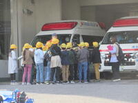 11月27日(木)に3年生が2グループに分かれて、市川市の東消防署の見学に行きました。消防署では署員の方に、消防関係、救急関係の車両や機材の説明をしてもらいました。見学中には、通報が入り、先ほどまでみんなが中を見せていただいた救急車の出動もあり、リアルな場面にも遭遇しました。子ども達は、署員の方の話に耳を傾け、一生懸命、メモをしていました。また、本物の車両や機材が目の前にあり、最後まで興味津々でした。最後には、はしご車の見学もあり、はしごを伸ばした車両にくぎ付けでした。教科書や写真や資料ではなく、実際に見学することで多くのことを学んでいたようです。近くに、消防署があり見学させていただけることに感謝しています。