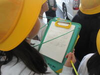 晴天の中、3年生みんなで学区探検をしました。今日は学区の北側を中心に探検してきましたが、学校の周りにどんなものがあるか、どんな場所があるか、子ども達は興味を示しながら、地図で確認していました。
