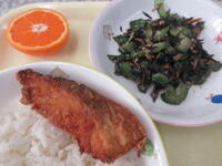 先日もお知らせしましたが、今は「初夏の読書週間」中で、いろいろな取り組みをしています。本日の給食は、読書週間に合わせて、絵本の「キャベツくん」にちなんで「キャベツメンチ」が給食で出ました。業間休みには、家庭科室で図書委員による「キャベツくん」の絵本の読み聞かせを行いました。会場には、1年生の子ども達を中心に大勢集まり、楽しい時間を過ごしていました。