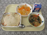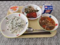 1.2時間目に6年生の調理実習がありました。料理名は「ハム入り野菜炒め」です。本校は家庭科専科の教員がいるので、準備にも時間をとることができ、より分かりやすく、スムーズに調理実習を行うことができていました。子ども達は、調理の準備、調理方法、安全面の確認、片付けの仕方などを確認したのち、各グループに分かれて調理に取りかかっていました。野菜くずは広告紙で作ったごみ入れに入れ、洗剤の使い方にも気を付け「SDG'S」を意識しながら、それぞれの班が、協力して、野菜を洗い、包丁で野菜やハムを切り、フライパンで具材を炒め調理していました。試食の時は、いろいろな班から「おいしい」という声が聞かれました。