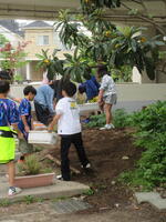 校庭に、植木鉢を持った子ども達がたくさんいて何だろうと思ったら、古い土を新しい土に入れ替え、ホウセンカを育てる準備をしていました。古い土を土置き場に捨てると、そこからハサミムシが出てきたり、ナメクジが出てきたりしていました。虫を見つけた子ども達からいろいろな発見の声が聞こえてきました。これからホウセンカを育てていく中で、「不思議」をいっぱい見つけて、いろいろなことを発見し学んでほしいと思います。