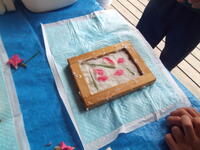 これは、6年生の書写の授業の様子です。書初めの「夢の実現」という字の練習を行っていました。普段は、教室の机の上で、半紙に書いていますが、書初めは別で書初め用の長い用紙を使って、床で行います。普段と違う紙の大きさや姿勢に戸惑いながらも、一人ひとり、集中して練習を重ねていました。