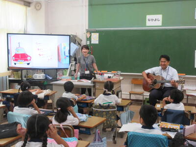 本日、4校時に1年生のクラスで「校内授業研究会」「国語」の研究授業を行いました。「校内授業研究会」とは、講師の先生をお招きし、教職員の授業力アップのために行う授業のことで、「教科」や「研究テーマ」を決めて授業を行います。本日は単元名を「はたらくのりものずかんをつくろう」と題して、自分で調べたメモに基づいて、書き方を確認しながら、のりものカードを書きました。多くの先生方が授業を参観したので、初めは後ろを気にする子ども達もいましたが、その後は、活動に集中し、最後は作ったカードについて発表していました。
