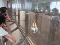到着するとすぐ、センターの紹介ビデオで市川市のごみ処理の現状について学びました。6階建ての大きな施設内では、最終処分場に運搬する灰の積み込み場や、焼却炉に可燃ごみを入れる巨大クレーンが動く様子を見学しました。