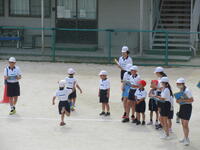 本日の業間休みに低学年リレー(1・2・3年生)の練習を行いました。校庭は早朝の雨で一部水溜りがありましたが、土を入れて今日の運動会練習に備えていました。走順ごとの並び方を確認した後、1年生からスタートしバトンをつないで3年生がゴールしました。最後にバトンリレー時の注意点を選手みんなで確認しました。