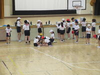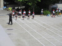 5月25日(土)に運動会を行いました。朝早くからPTAの皆様やおやじの会の皆様が会場設営に参加していただきました。全校児童が整列した開会式は計画代表委員や運動委員が司会進行を担当しました。ラジオ体操後の「大玉送りは」接戦の末白組が赤組に勝ちました。